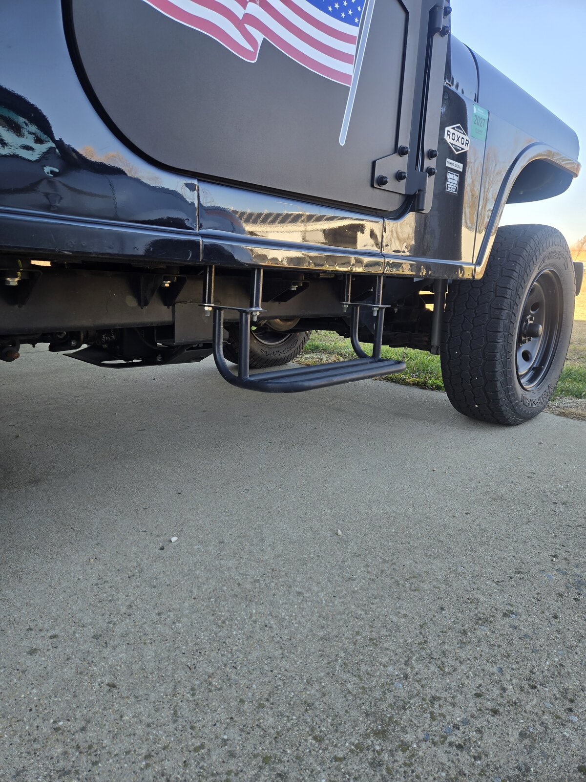 Oh dude, I REALLY like the idea of the hanging steps. With thick enough steel cable, I doubt it would even move around a ton on the highway.. I think I'll knock that out here in a few months. Too easy to weld up a few extra thick plates and run the cable through it and hang it up. I was planning on the diesel freak steps but I was thinking the same as you. With the 5.5 and 35's its not gonna be low enough for her and the kids.