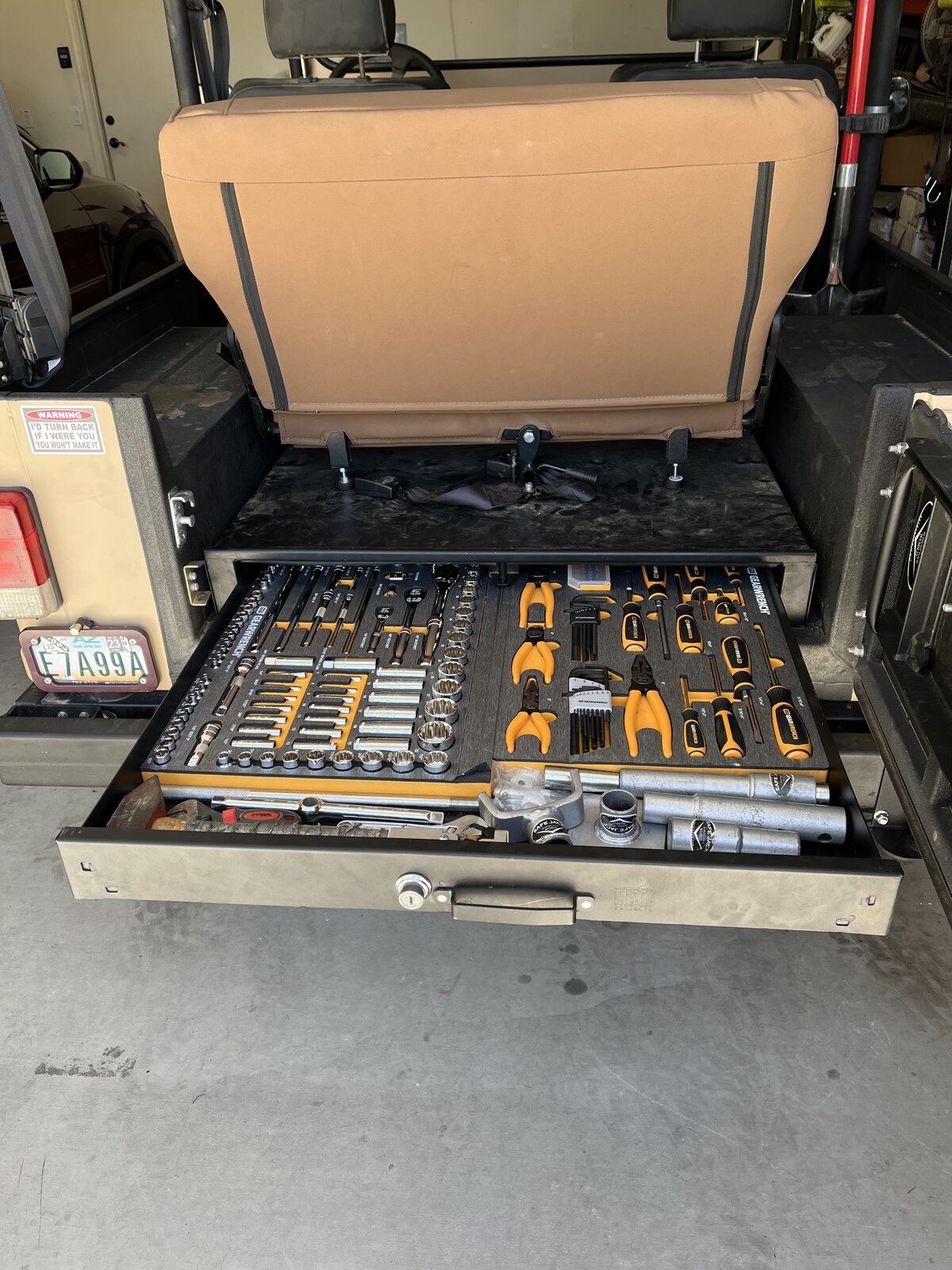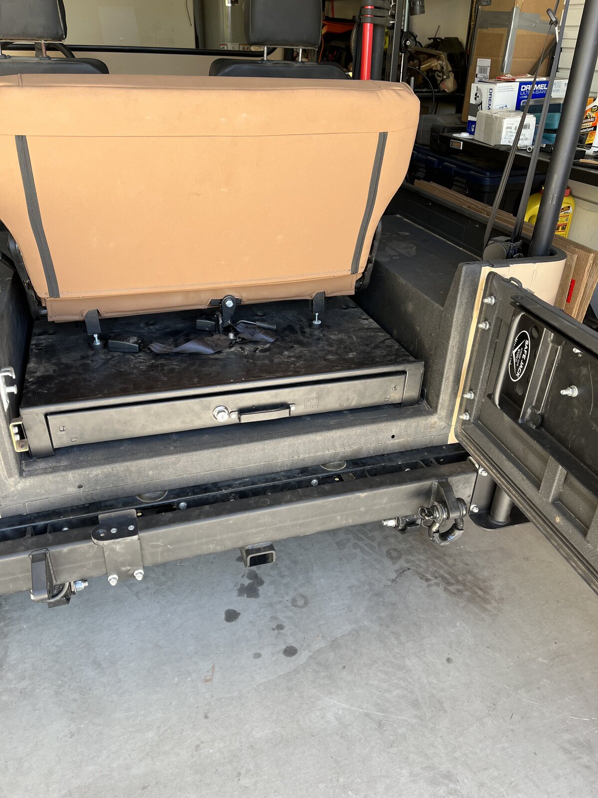 Thanks. Since I love the open air and never wanted an enclosed cab but wanted as much lockable storage as I could incorporate, I new that Tuffy Security Products sold that to fit my old ‘67 CJ5. It is a double benefit since it’s lockable, but also raises the rear seat higher to make it more comfortable for passengers knee’s back there. Had to take good care of the grandkids, right? LOL That along with the Cecco center console and the floor safe I used for a glove box gave me plenty of lockable storage.