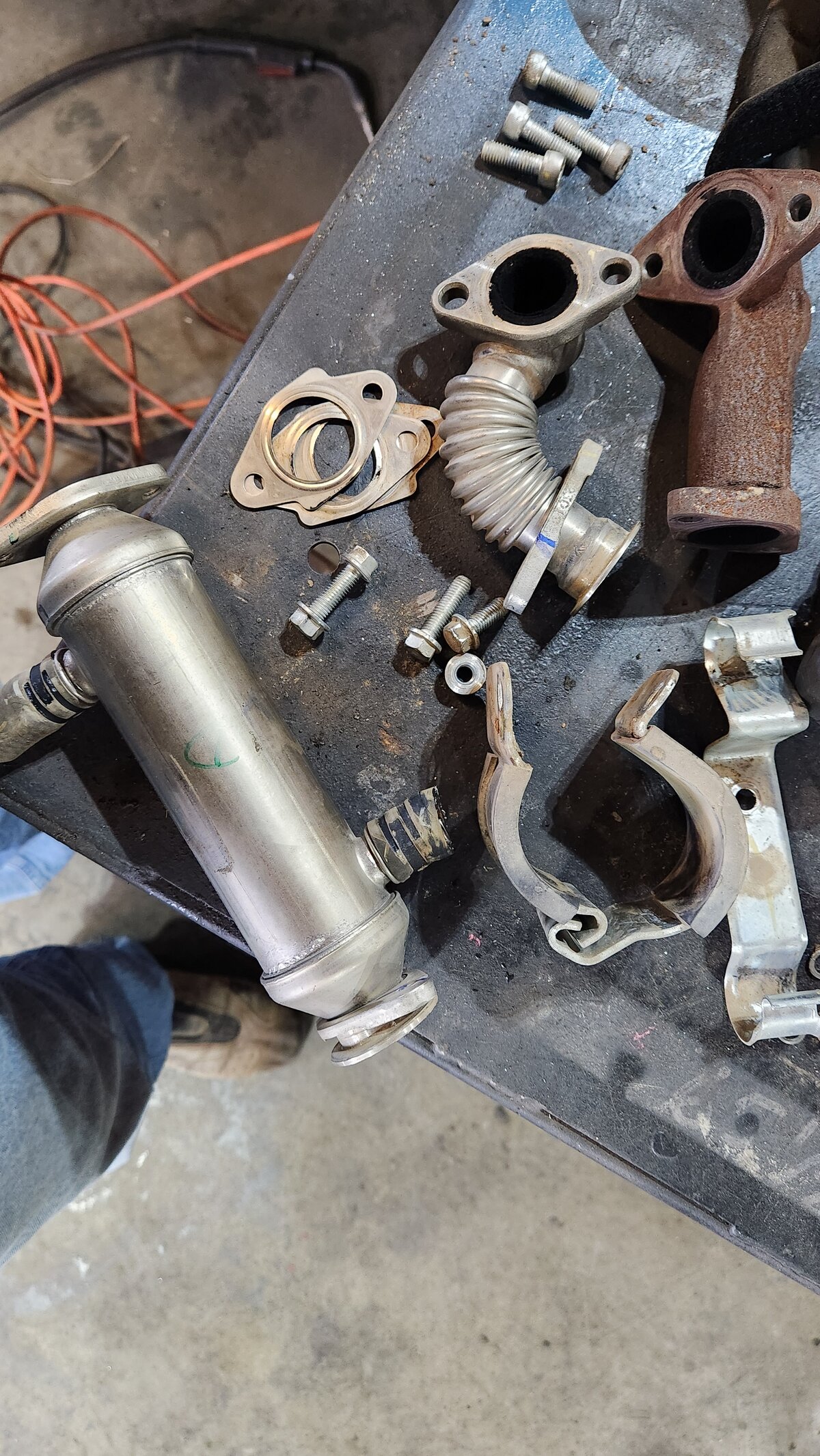 Deleted my EGR but left the actual valve on the intake with a block off plate and still plugged in to eliminate check engine light. Everything else is here, in case someone needs it. $50 and Ill ship. Text me if interested at Five Seven. Three61 Nine. Two three 6 two.