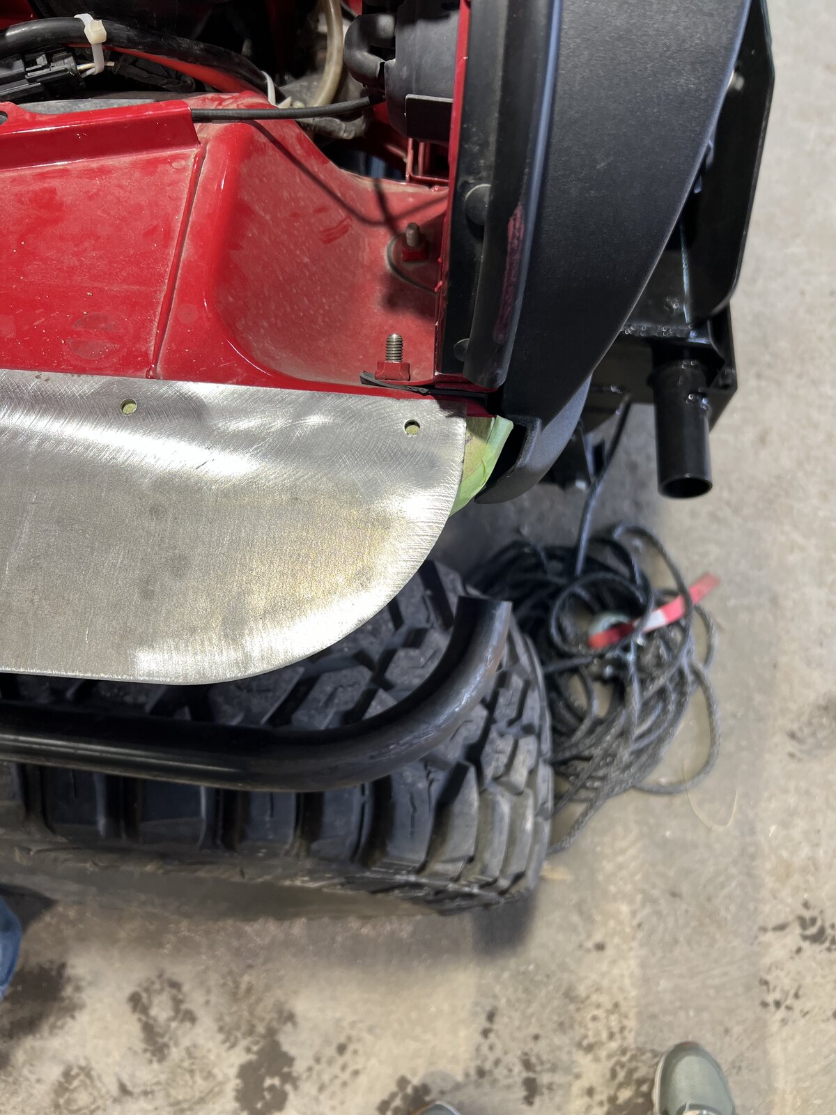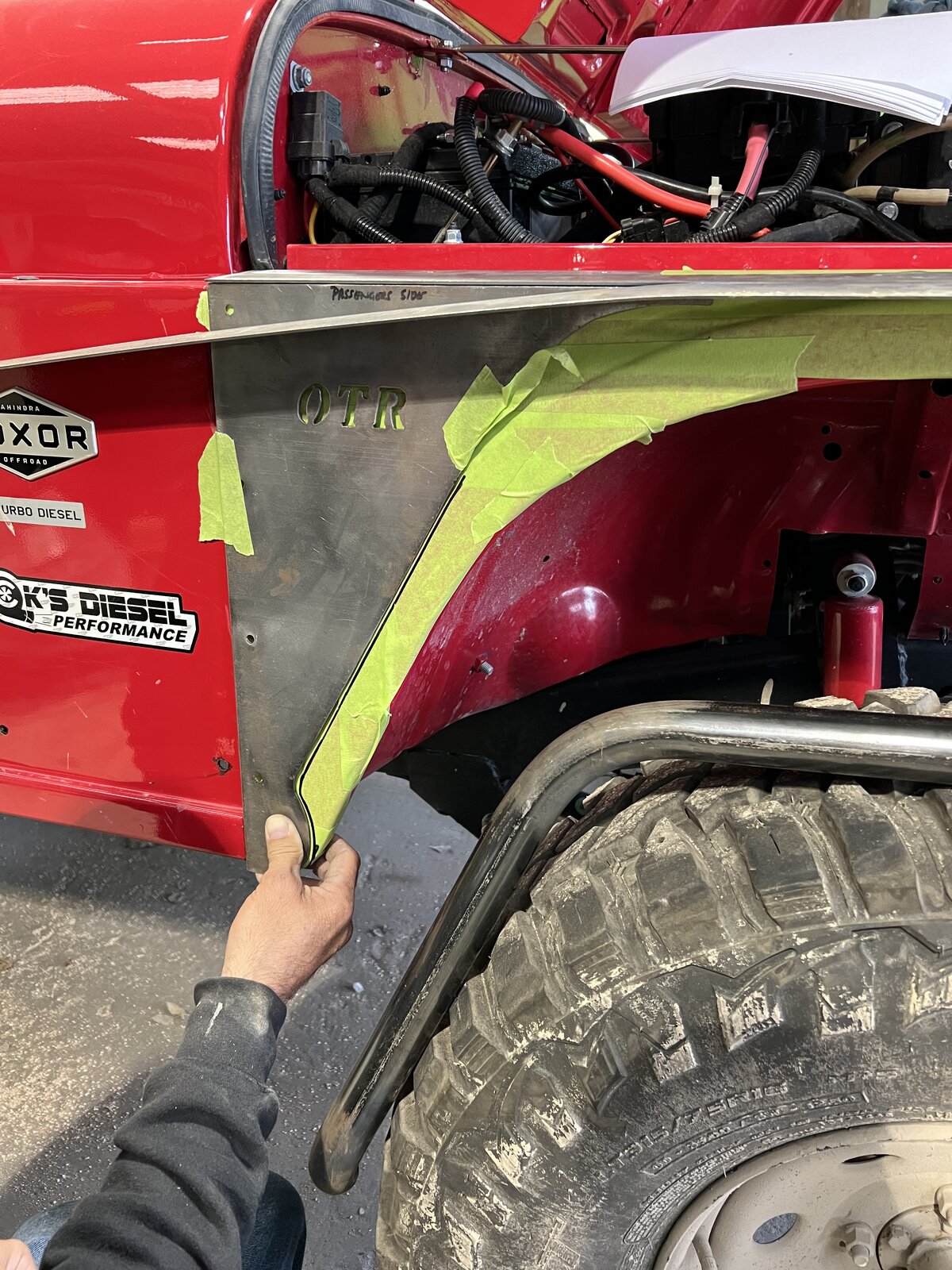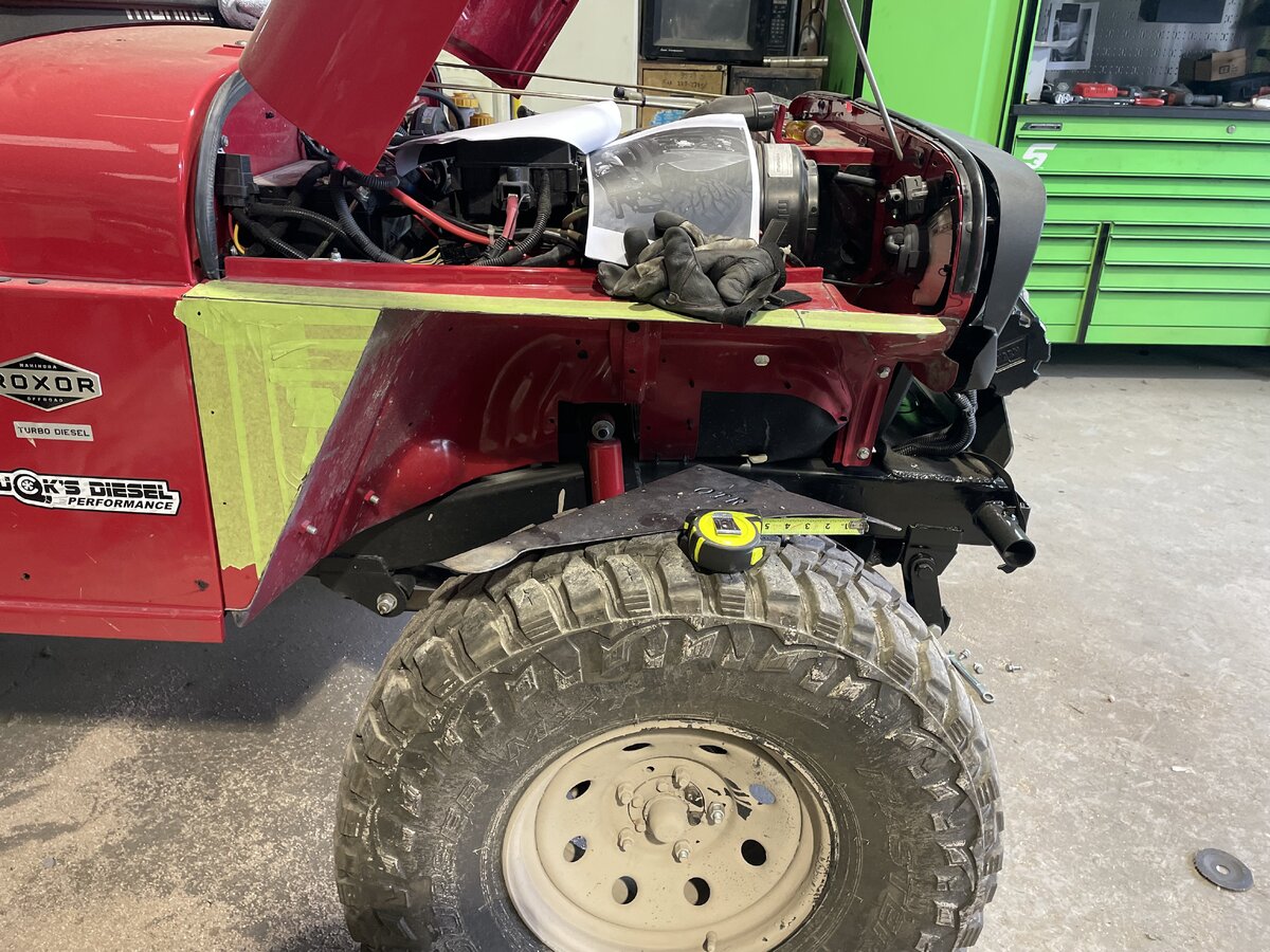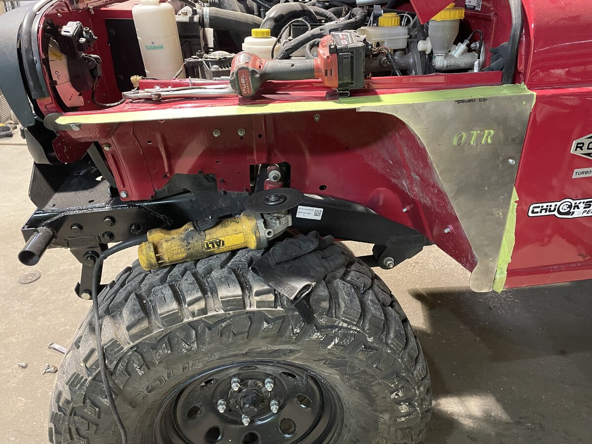Here’s a couple photos of when I was getting my 2022 model fitted up with the on the rox metal fender. There is a real amount of trimming to do. You’re not cutting beyond any pinch welds tho.