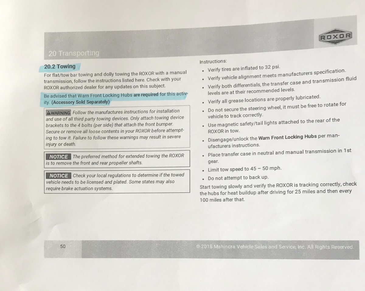 So just to be clear, what is the conclusion here? Seeing as there are two Roxor manuals in previous posts with vastly different statements on flat towing, what can we or have we concluded so far. Is it a model difference or just a manual update. A flat tow could save me a bunch of money on a trailer right away.![]()