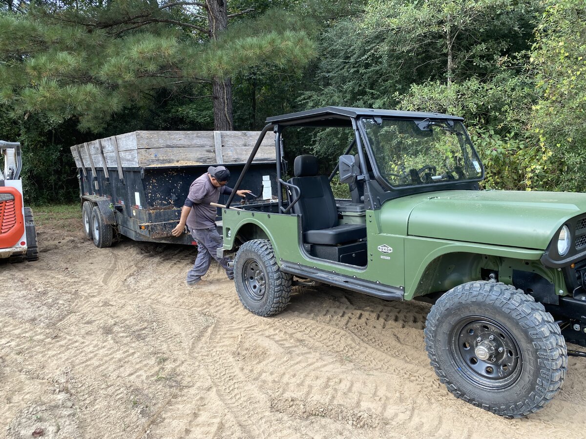 Not doing storm clean up at them moment we have being spared so far this year. Its a bad year to say the least for others. Yes. Big dump trailer we had a few loads of gravel to fix road. My buddy f250 4 wheel drive didn't work so we moved it with the Mini Truck as they call it. Roxor has been great. Its been doing fine but it has also been dry. Not sure how those tires and lack of locker will do on our roads when wet.