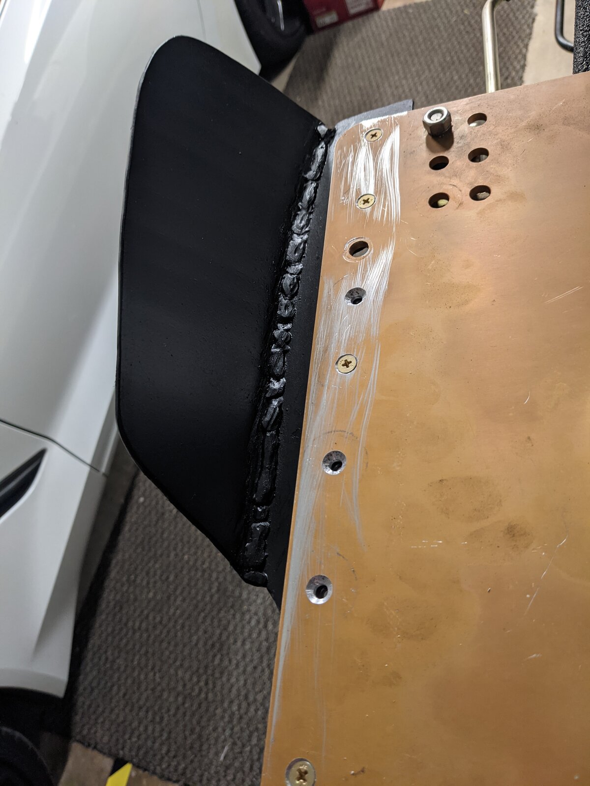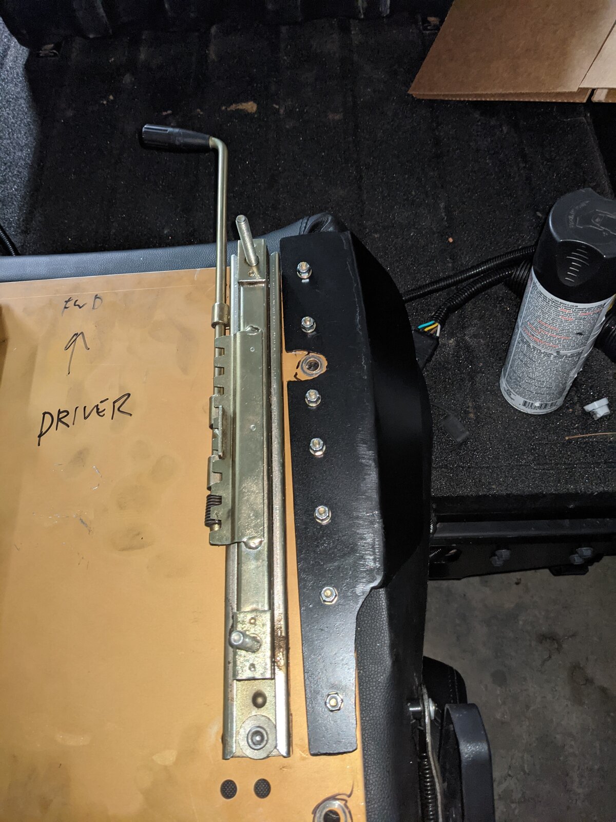Once home I disassembled the seat from the adaptor plate. Drilled the attach holes in the new side support and seat plate. Once it was all drilled in I pulled it apart and I did counter sink fasteners from the top to keep all the fasteners out of the way of any sliding seat parts.