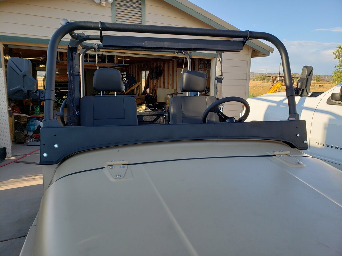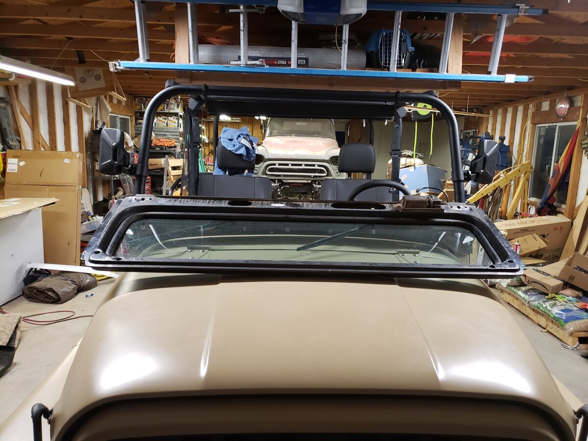 I picked up a YJ windshield last weekend from a part out. Got it home, took off the lexan windshield and installed the jeep windshield/frame. Yes, it bolts right up, but only after removing the forward ROPS. Not going to work, especially if you're tall.