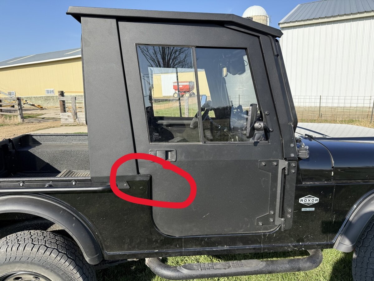 Bob R1, if you decide to add doors there is a plastic cap on the bottom of the B post frames that needs to be removed before fitting the cab. It was not mentioned in the instructions I had for the cab install but was all the difference after hours of trying to figure out why the doors would not fit or latch. Will still take some time to adjust doors and latches to fit but they will. photo attached