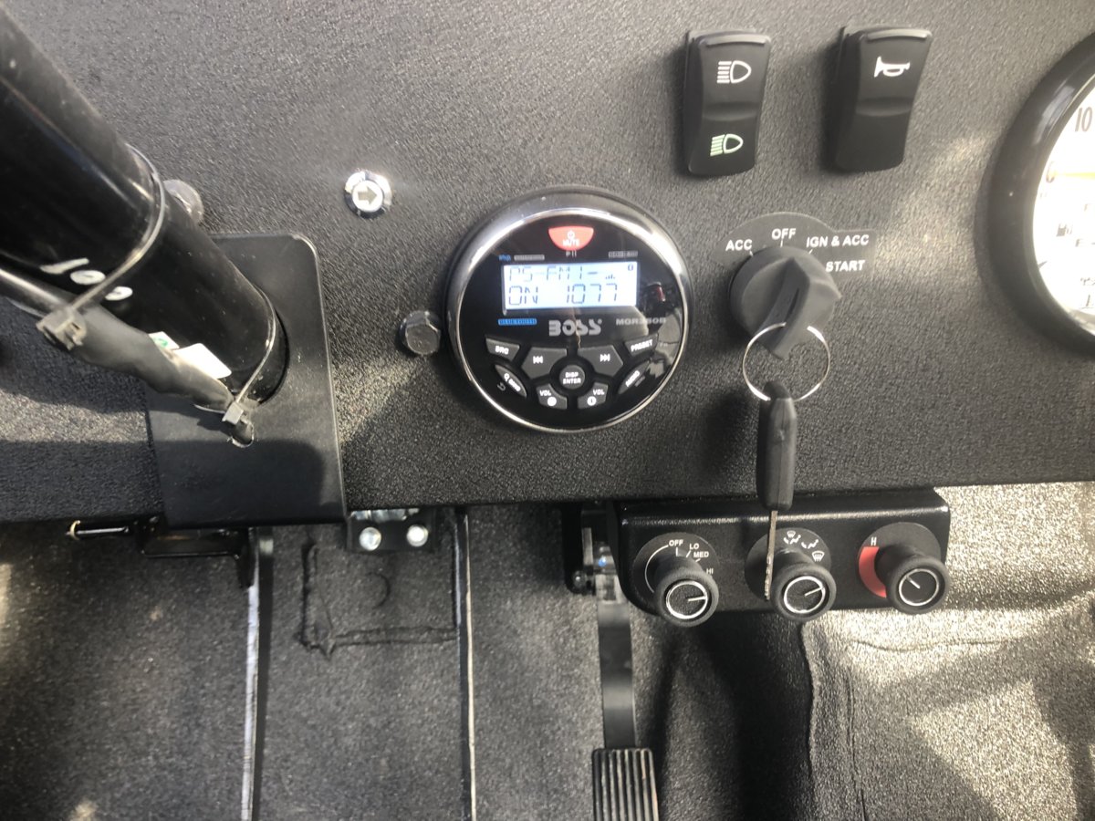 Marine radio, 400 watt marine amp, 6-9 speakers, Marine tweeters in dash. Sounds great
