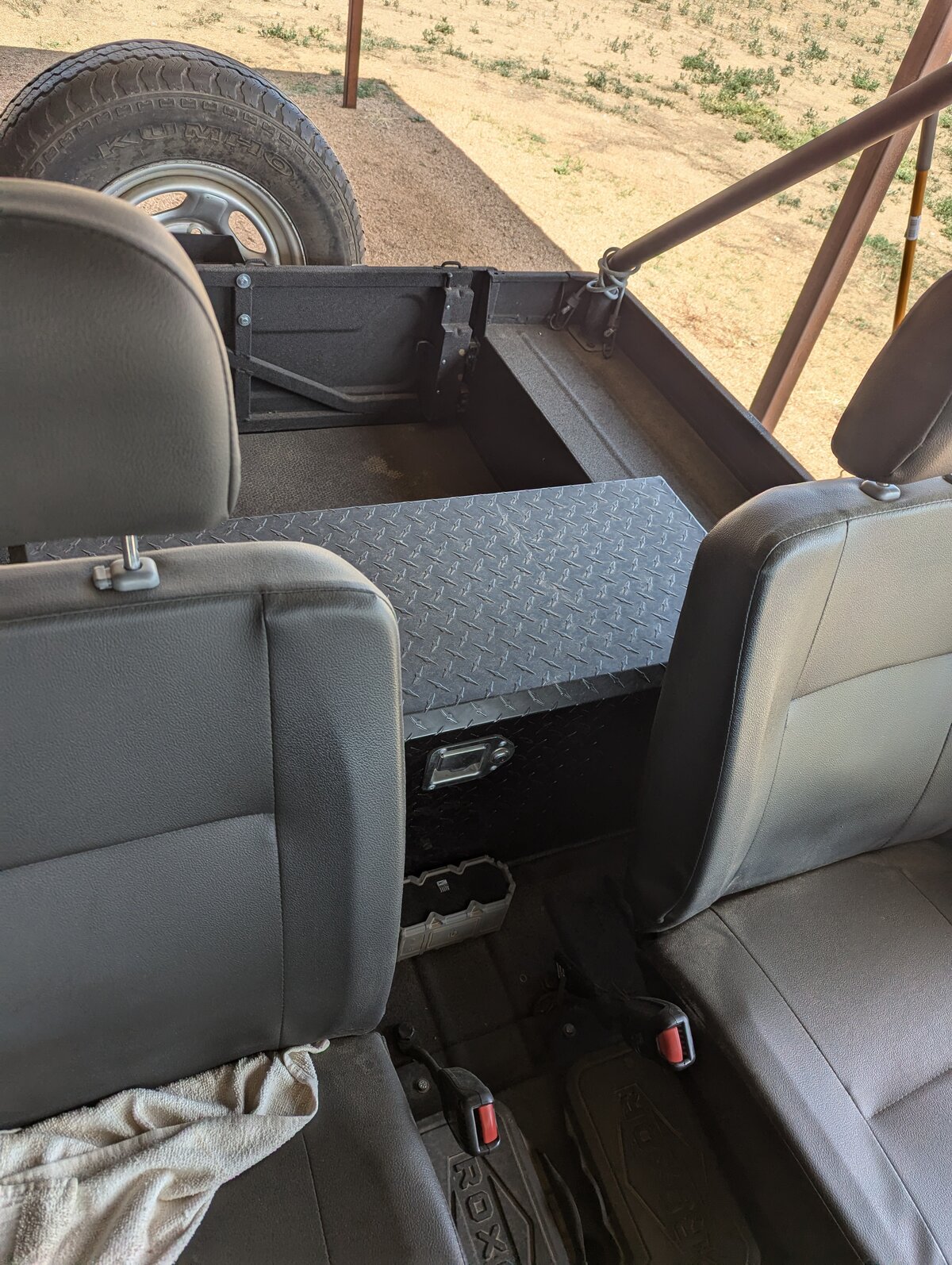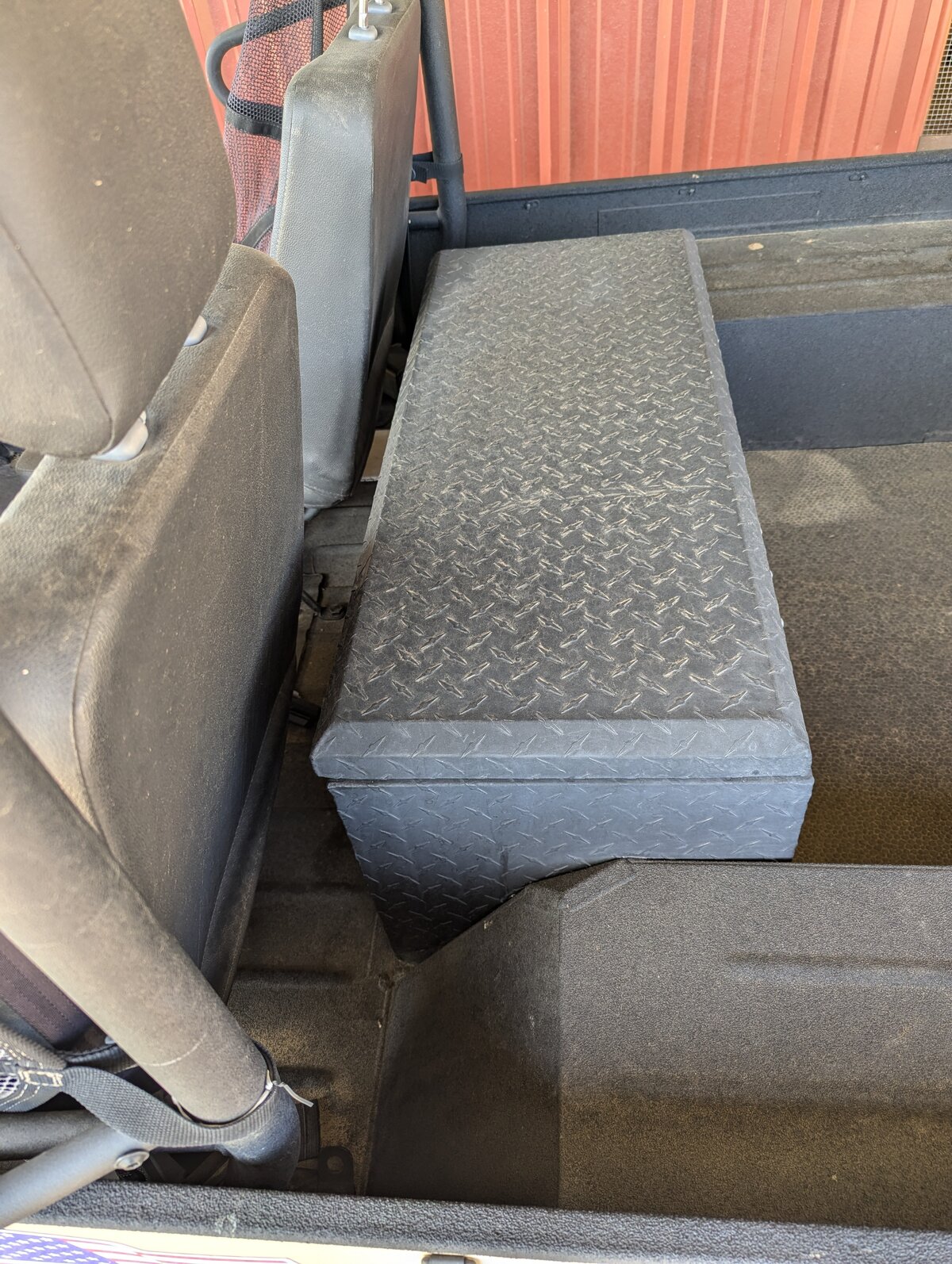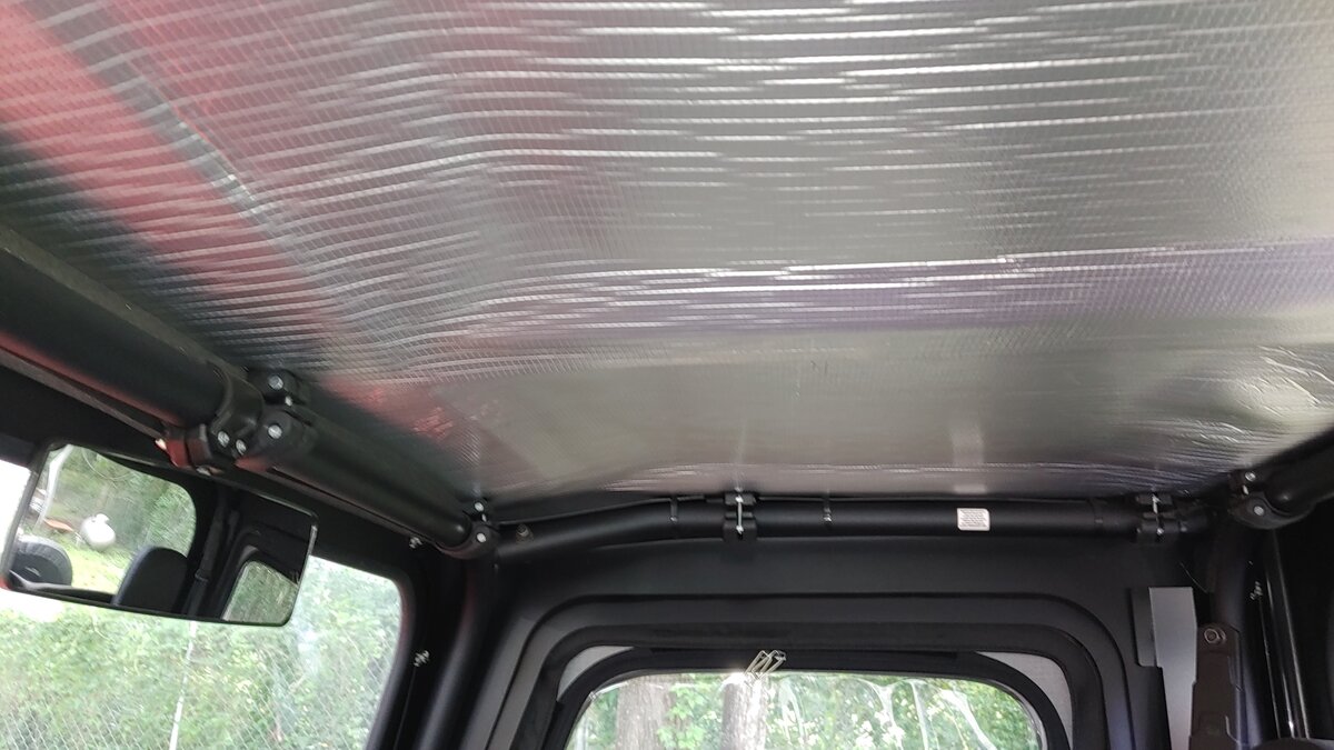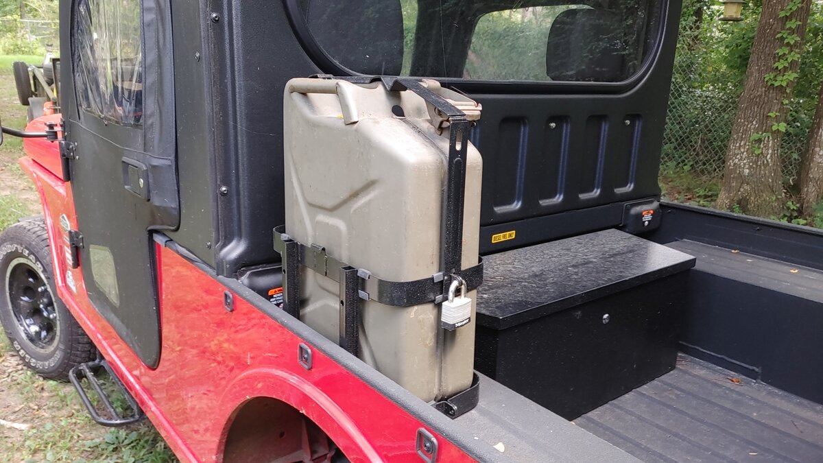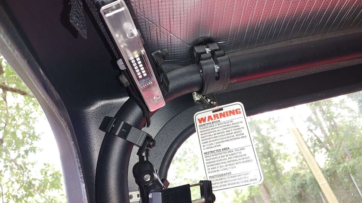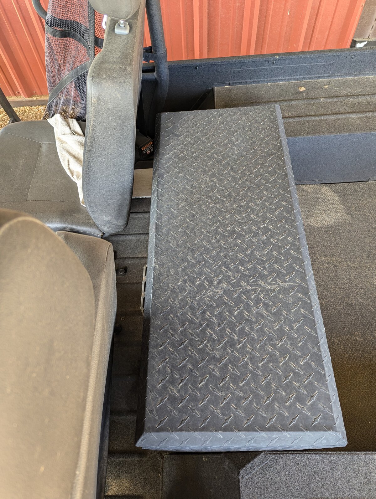 I also installed one of the Kolpin RHINO GRIP XL Gun Racks. (One Half of the Two Piece Mount) I tilted the head, and mounted it at an angle with the Head behind the edge of the Passenger seat. This positions the gun at an angle behind the seats. The gun butt just sets on the floor. So far it looks like it will work fine, as long as my dog stays home. His new ride position with the Bulkhead installed, is between the seats on a Furniture pad.