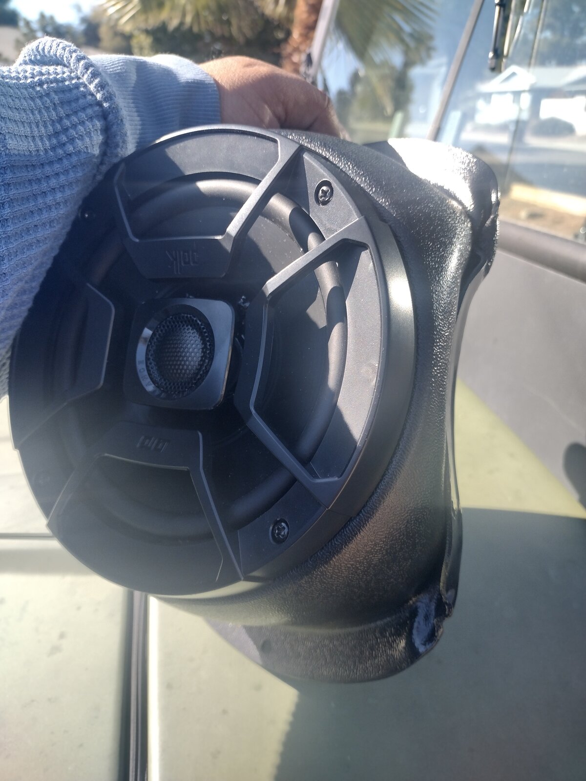 I've lusted over those fancy on the rox kick panels for a while but I just couldn't convince myself to pay 90 bucks for them. So i made on the rox panels at home. I dub them on the cheap kick panels. I used a heat gun and flattened out the narrow side of these plastic 6.5 inch speaker mounts. For a little over what the otr panels cost i was able to get speakers and mounts. I already had a heat gun.