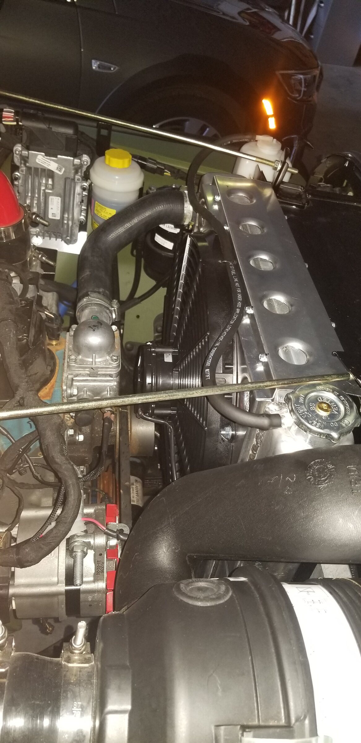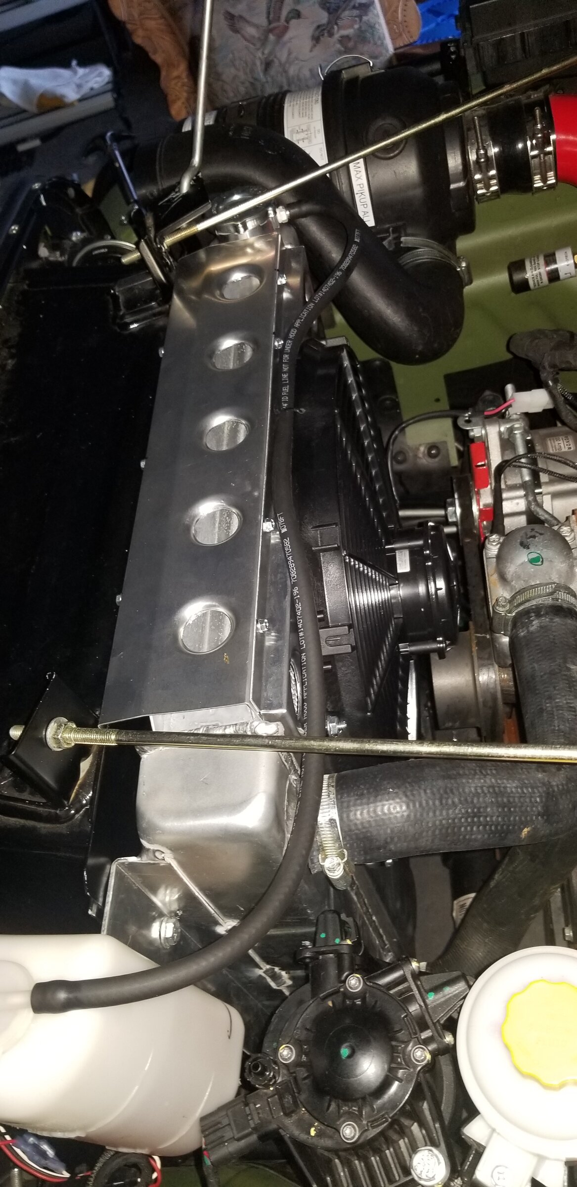 Had the same issue. DF stage 2 tune, EGR delete, electric fan and no cat. However I do not believe these were the only issue. I also added 4.88 gears, 33 inch tires, full cage, sidlers, front and rear bumpers, skid plates for engine, transmission, transfer case and fuel tank, windshield, winch, aluminum roof, aluminum roof rack and lights. The combination of increased HP, Torque and WEIGHT are causing the engine to work harder and produce more heat. My temps would run in the low 200 all the way to 229 or higher when pulling hills or trying to maintain 60 MPH. The stock radiator is single pass one row of 1” tubes. The fan was 900 CFM. What I did was change to a slightly larger all aluminum two pass radiator with two rows of 1” tubes and 2000 cfm Spal fan with custom shroud. Radiator installed with only very minor trimming of the top flange of the stock shroud to allow the radiator tanks room and some brackets welded to radiator. Radiator is also supported by full upper and lower saddles besides the side brackets. Stock hoses were reused with trimming. Radiator catch container was used in same position but I did need to a longer hose to connect to radiator. Both upper and lower supports and new fan shroud where attached to stock radiator shroud using self tapping screws in addition to side brackets. You do need to remove passenger side shroud support rod to remove radiator cap. Radiator is offset to passenger side slightly to allow room to access fuel filter due to larger radiator end tanks. Last picture is showing bottom of radiator and saddle support with lip that rests on stock radiator shroud. Yesterday in 95 degree heat and high humidity I pulled a long steep hill and attempted to maintain 60 MPH and only saw 212 degrees and this was with 249 IAT. As soon as I hit level ground, the engine went back to running around 195 which is now normal when running highway speeds (60 to 65 MPH). Next step will be to add an intercooler and I am confident that I will have no more cooling issues. Probably will also go to RX41 turbo in future. I worked with this place to figure out radiator size and mounting. I can not say enough good things about them. Ask for Chris.