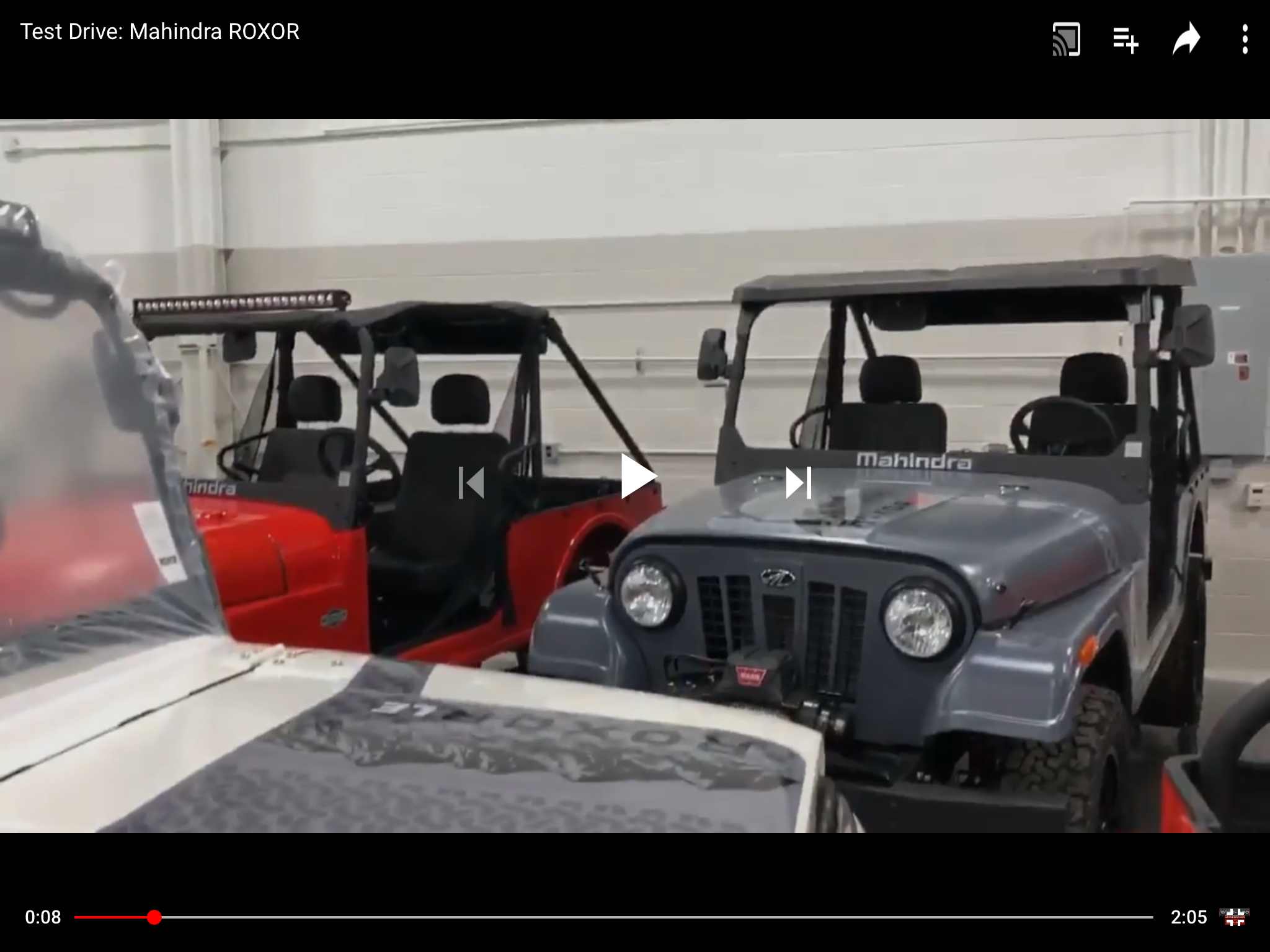 I've seen some video of Thar's overseas that have metal cables running from the roof down to the fenders. I assume those are to guide tree limbs? Probably wouldn't help in this situation though since that looks to have a fairly big lip.Did a screen shot from a video with a Roxor with a hardtop in the back ground. I don’t care for it sticking past the roll bar, I know I might clip trees with that. Yamaha Rhinos came with a roof like that one year, then downsized it so the roll bar would hit anything first. View attachment 147