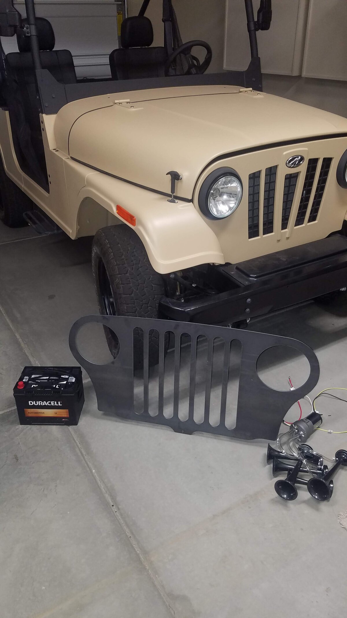 So, I have a seven slot grill to install, a Dixie rebel horn, new "better battery" than stock, and my fortress windshield and roof ordered, spare wheel cover ordered and new colors approved! Big week ahead!