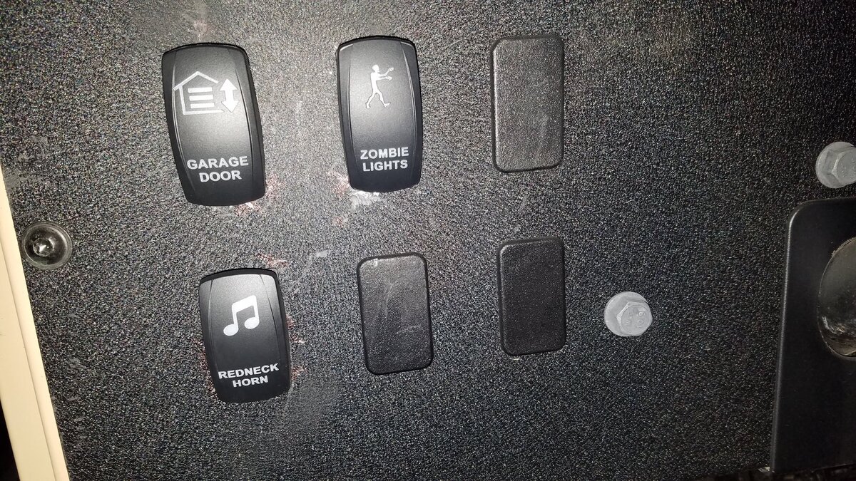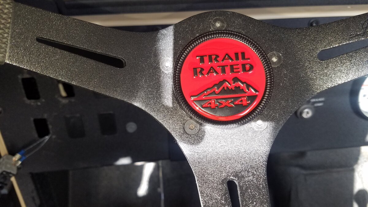 Well, made some progress! Now have my "Zombie" lights, tire cover and trail rated badge for my steering wheel! (Gotta drive the Jeep peeps crazy-)