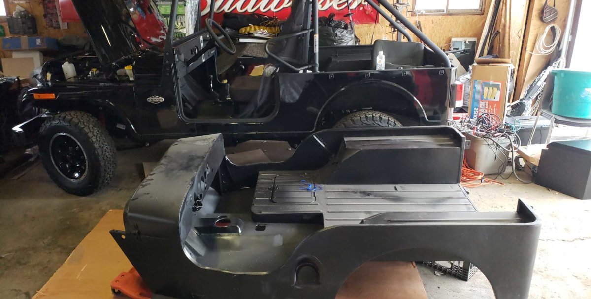 its actually going on a cj7Nice work! What do you plan on doing the Roxor body? I have a great frame of a 64 CJ5 that I would slap a Roxor body on. Kind of the reverse of your conversion.