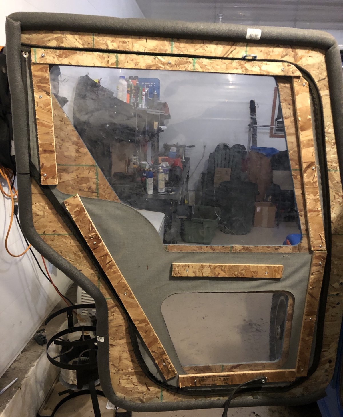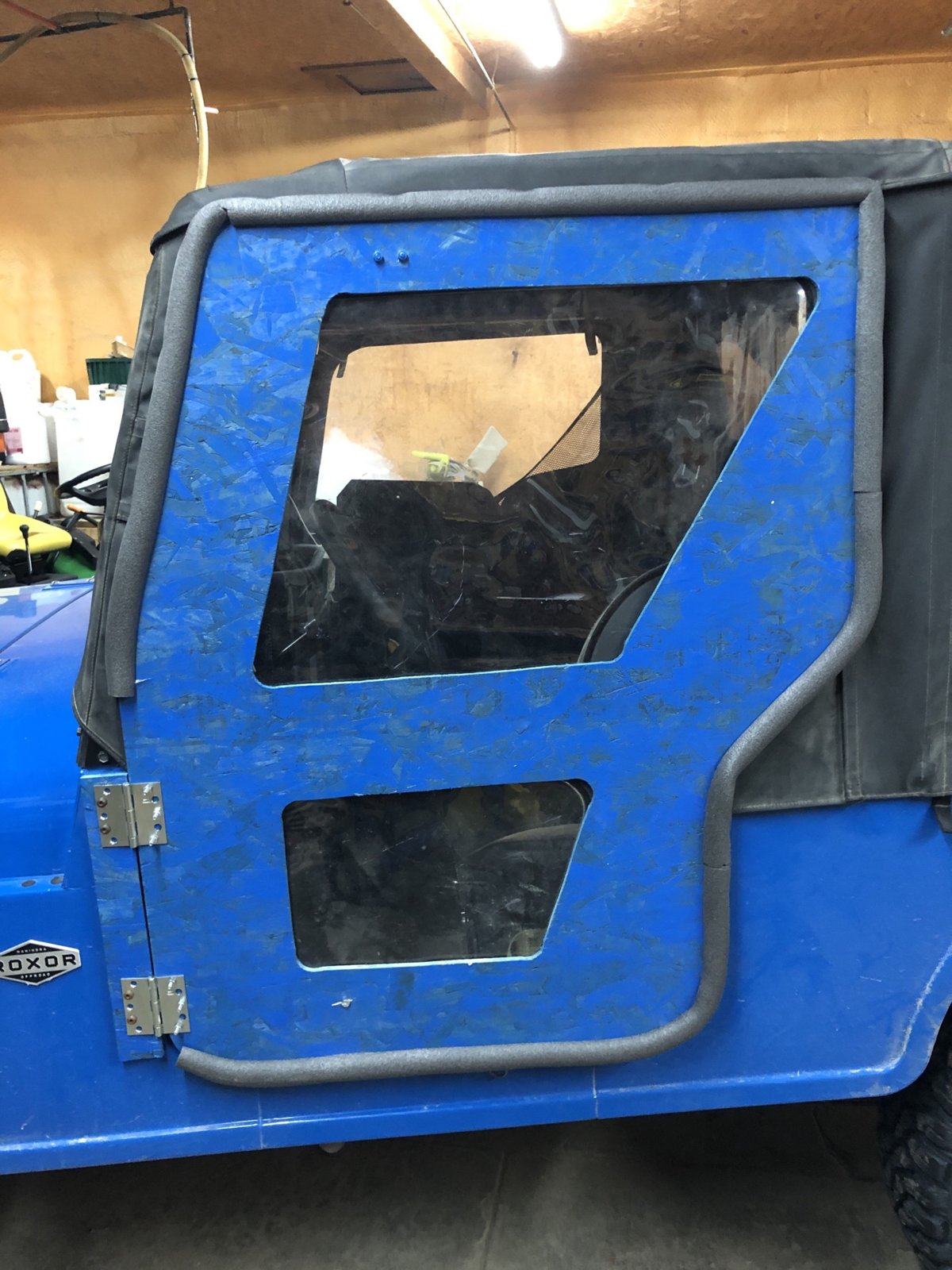 I sandwiched the old door for my windows. I didn't even cut it. I didn't have anymore paint and town is 15 miles. I'll paint it in the summer.....maybe. I was going to use black, but I only had a can of yellow or blue. That is pipe insulation around it. It doesn't hold up great but it was $1.79 for 6 feet. lol