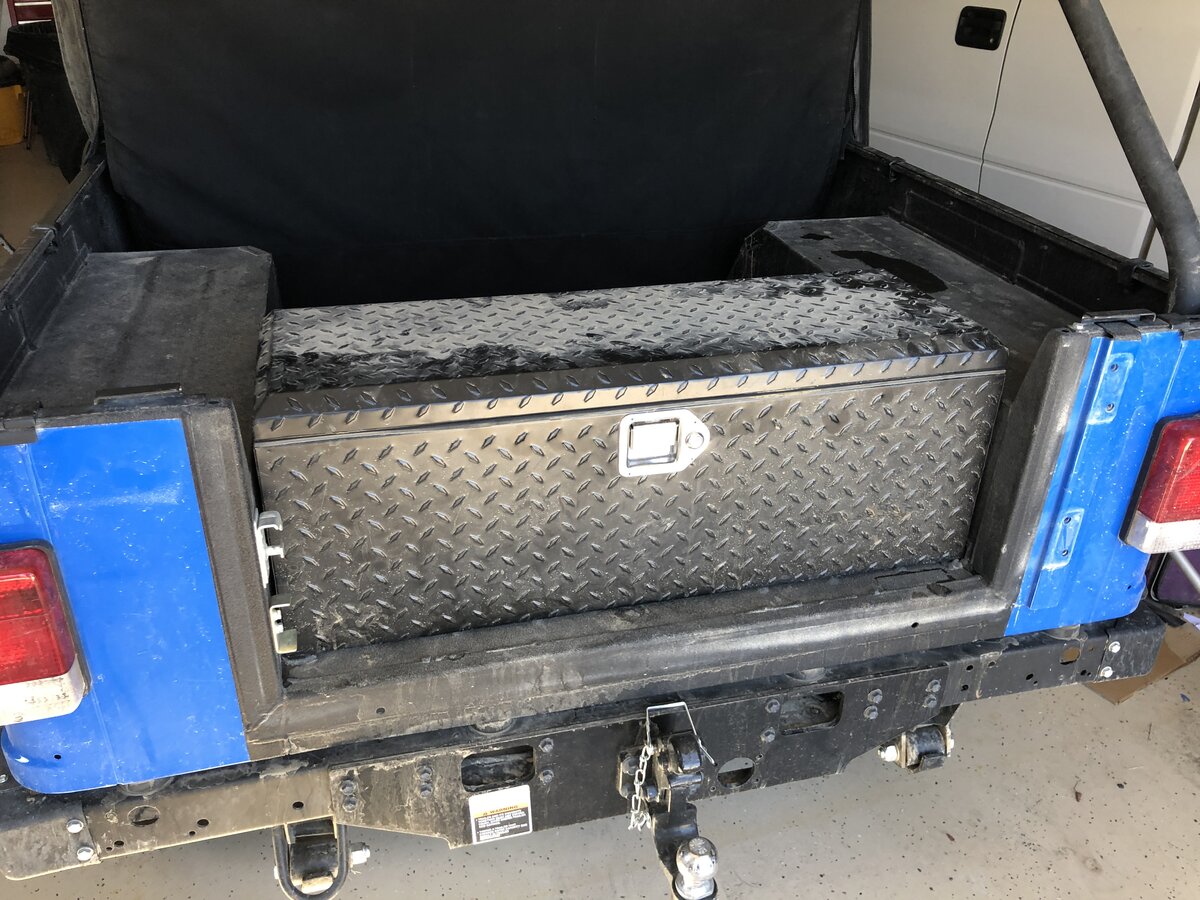 I use a box I got at home Depot years ago for off roading in my Ford raptor. It's mounted to some track I added to the floor like I have on the sides. I used aircraft seat studs, threaded studs with a head that fits into the track and located them in the box and the box drops over the studs and has free spinning threaded discs for nuts. So its easy in and out.How are people storing their everyday gear? I am looking at first aid kit, bottle jack, tool kit, etc. Basics.