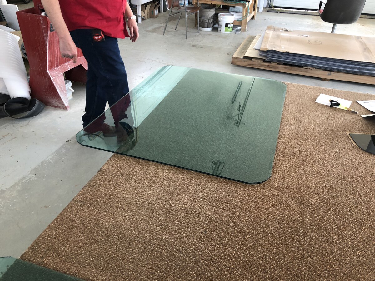Just dropped my vented frames at the glass shop for safety glass install. It’ll have a slight green tint like the piece in the photo, but hardly that noticeable outside. I’m so excited. Lol