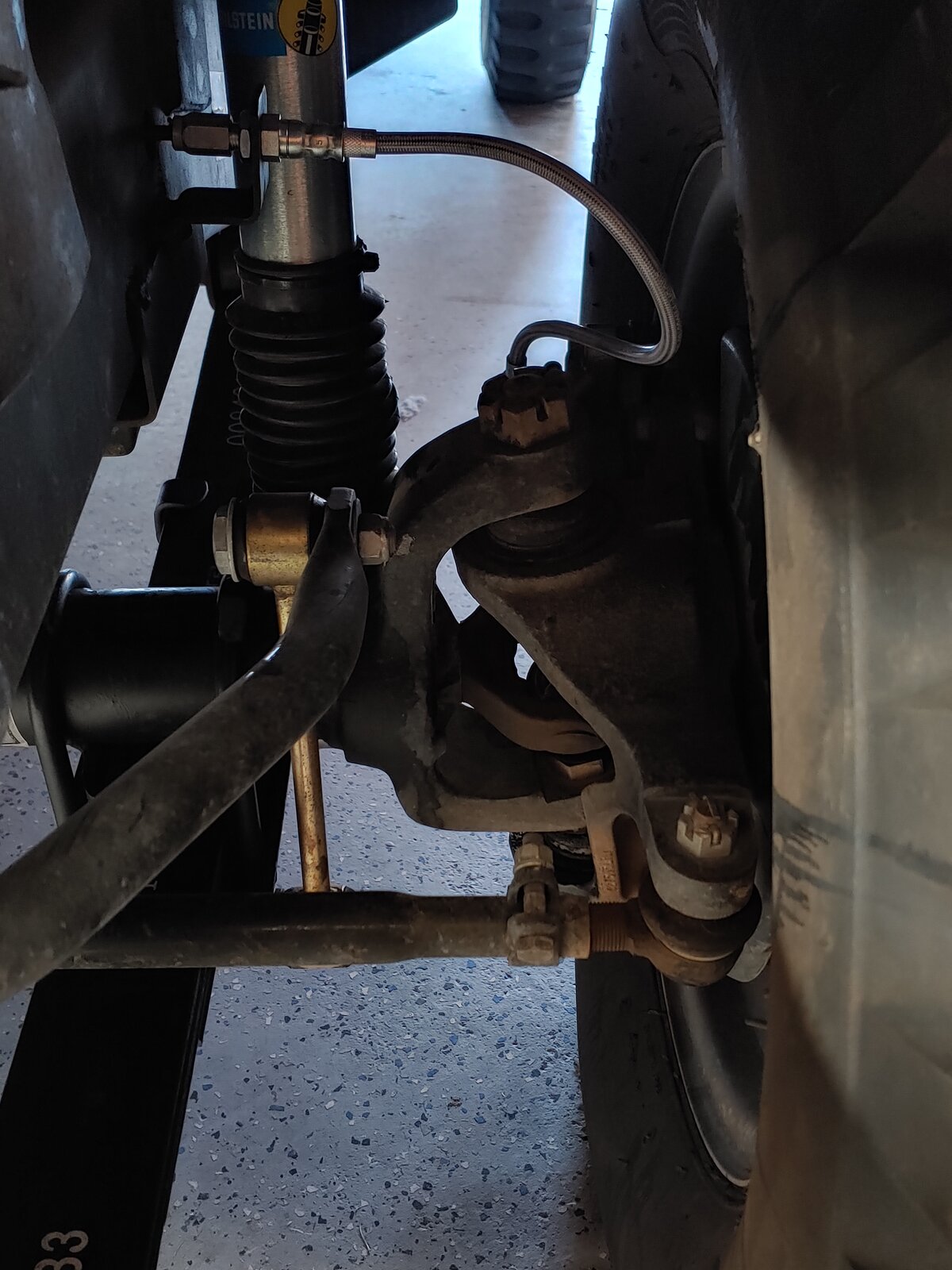 I'm hitting the brake line at full flex where it attaches to the bracket on the frame.I did the extended brake lines from OTR,