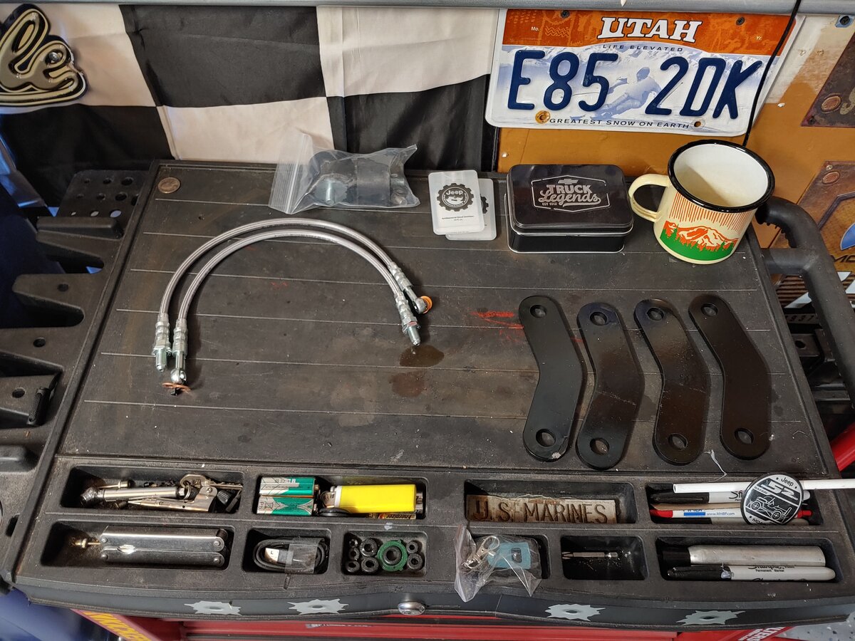 Just finished my front shackle kit from Max A. Added extended brake lines and skid plates. Huge improvement, overall very happy. Will test it out again this wknd in the Mtns. More to follow, By the way even the neighborhood Deer came out to see the upgrades. Hahaha